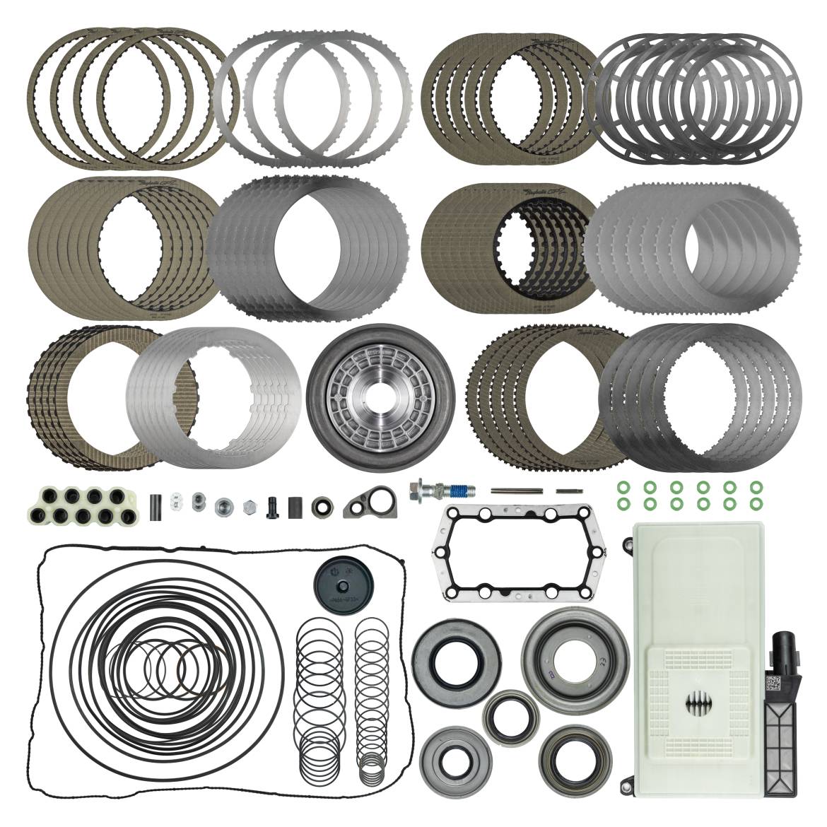 This Suncoast upgraded 10R140 transmission rebuild kit comes with new Raybestos GPZ clutches, steels, factory OEM filter and high performance overhaul kit.