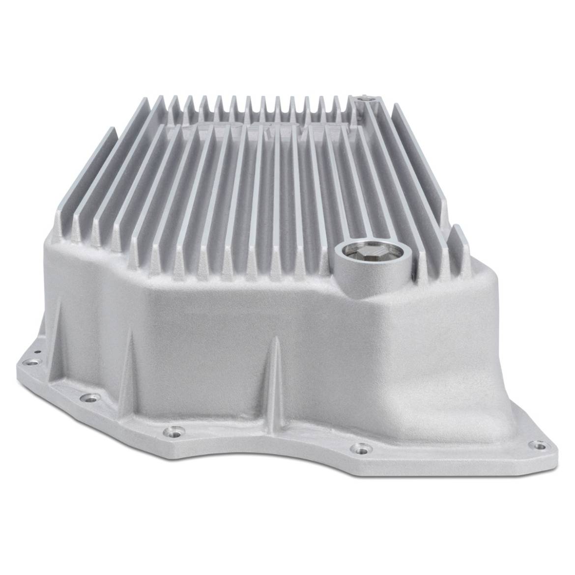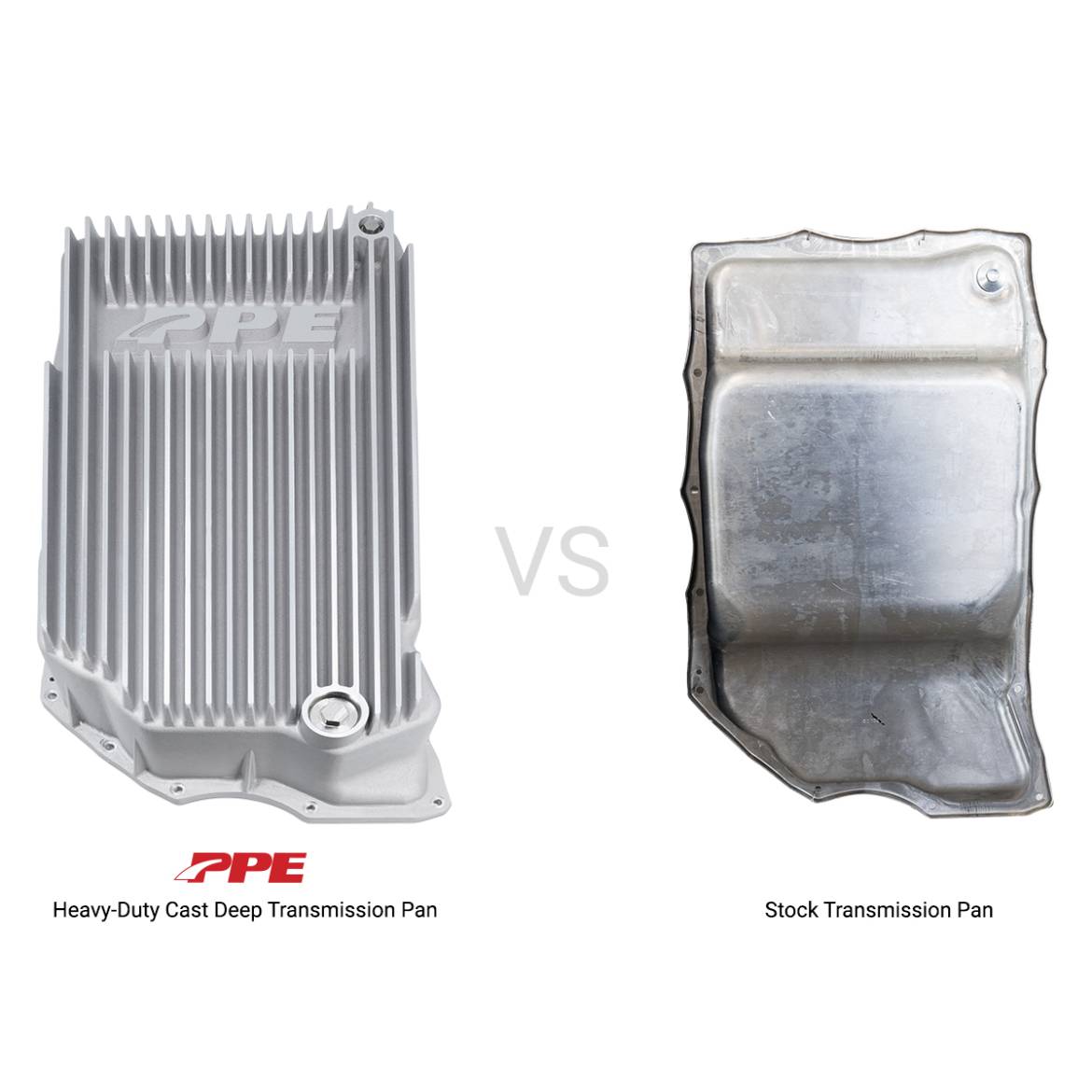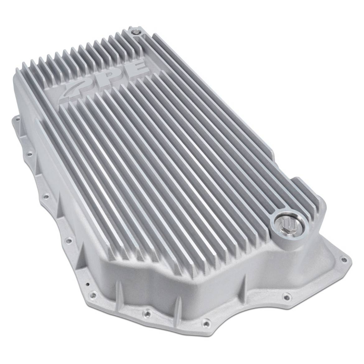 The Deep PPE Pan Increases fluid capacity by a full gallon which lowers transmission fluid temperature and increases thermal stamina. The engineered design includes cast aluminum fins and heats sinks to improve heat dissipation. The external gussets provide extra support to the machined flange to increase overall robustness.