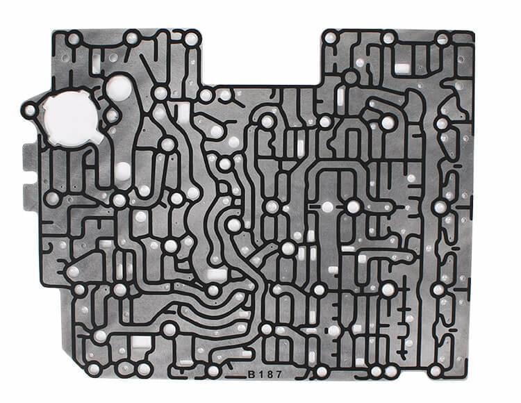Sonnax offers direct replacement OE-quality valve body separator plate 35740-187 for ZF8HP45, ZF8HP55 and ZF8HP70 applications. This plate incorporates a black silicon sealant bead to bond upper and lower valve body sections together once the rebuild is complete.