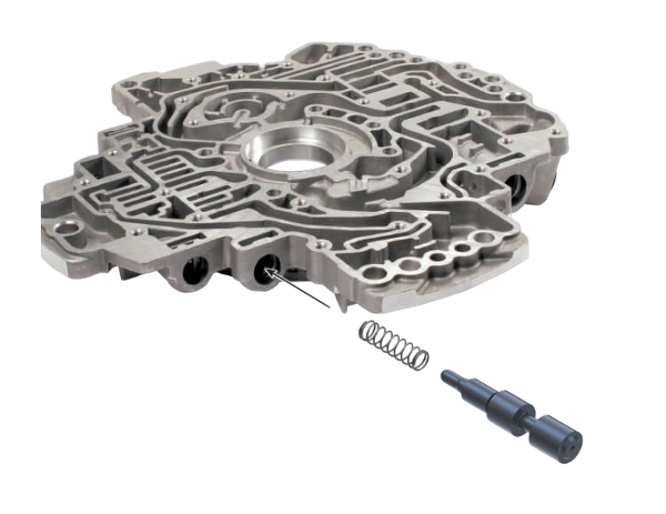 Vehicles with ’19-later Chrysler 68RFE transmissions may exhibit various converter and lockup concerns. These problems can be caused by the continuous oscillation of the TCC regulator valve excessively wearing out the bore and valve which allows critical apply fluid to leak past the valve spool and directly to the exhaust/sump.