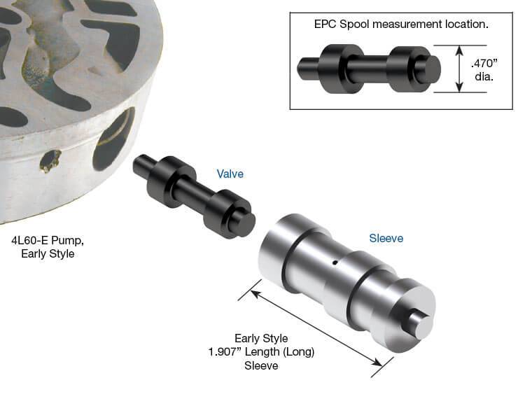 GM 4L60-E and 4L65-E transmissions frequently have poor line rise, which can result in 3-4 clutch, 2-4 band failure or poor shift quality. The duty cycle of the EPC solenoid causes the boost sleeve to wear quickly. Oil entering the torque signal orifice leaks past the boost valve and exhausts at the Reverse orifice, resulting in poor line rise. Reverse oil can exhaust both to the sump and back through the torque signal orifice. The outside diameter of the boost sleeve also allows some leakage through the pump body, which decreases pressure rise.