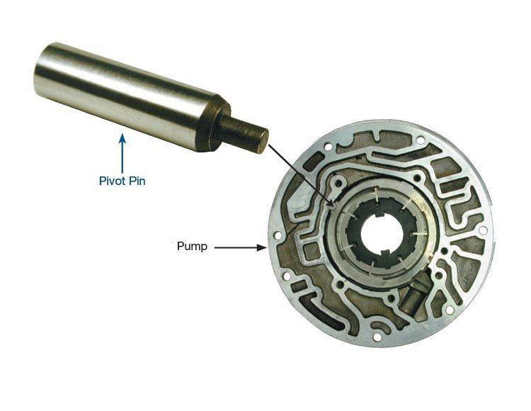 Vehicles with 4L60 & E and THM 200-4R transmissions can have low or high line pressure due to a worn pump slide pivot pin. Decreased oil pressure meant to maintain proper line pressures can leak past a worn pin. Sonnax now offers a replacement pump slide pivot pin. This direct replacement pin 65797 will help restore the hydraulic integrity of the pump when replacing a worn pin. This pin is made from through-hardened steel to prevent excessive wear