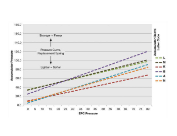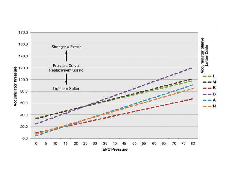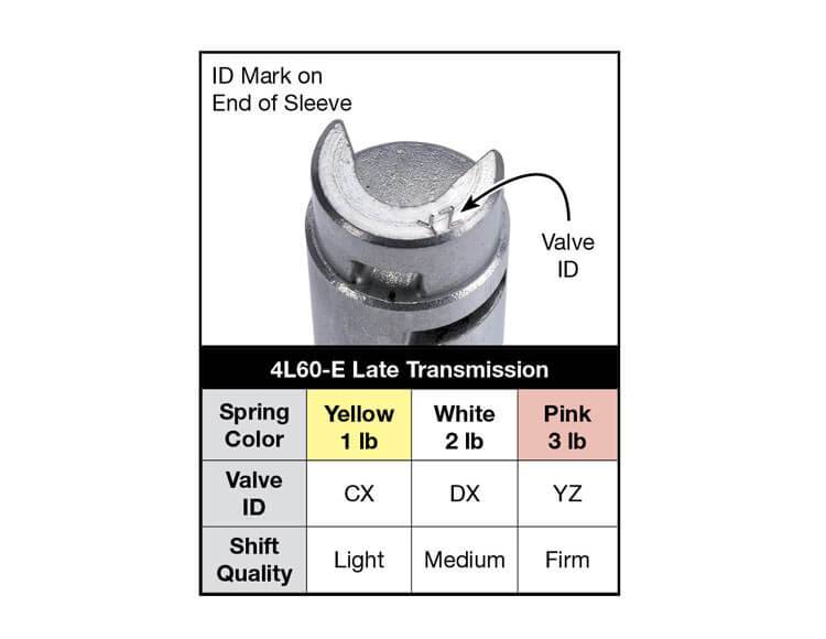 Available accumulator valve train kit ratios in GM 200-R4 and 4L60 units do not support the 4L60-E family of transmissions, impacting shift feel and resulting in poor shift quality.Correction:
