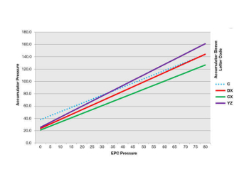 The 4L60-E series valve train has three OE size variations; CX, DX, and YZ. The size variations are clearly stamped with the letters on the aluminum sleeve. The most commonly found size is the DX. However, these versions are not available unless scavenged from other valve bodies. Sonnax accumulator valve train kit 77754-10K is specifically designed for the DX size with additional selective springs to cover the CX and YZ sizes.