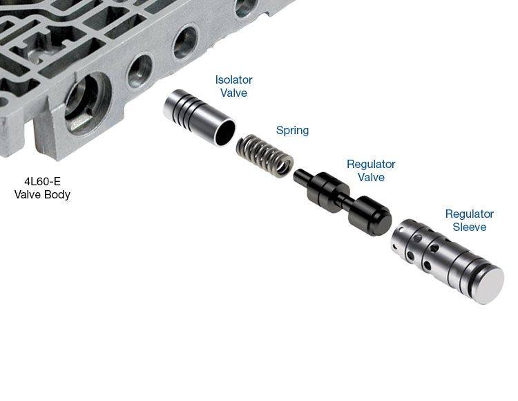 In GM 4L60-E, 4L65-E and 4L70-E units, severe wear of the TCC regulator valve bore is caused by oscillation of the OE valve allows regulated converter apply pressure to exhaust. This is a primary cause for TCC-related slip code P1870 and overheated converters. Exhausting apply pressure also diminishes line pressure, which can result in burnt clutches. Excess wear at the isolator valve bore reduces TCC apply pressure.
