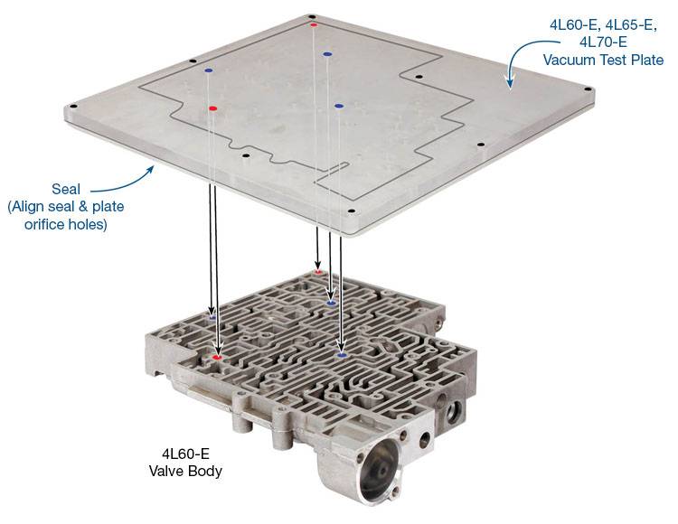 Sonnax vacuum test plate kit 77754-VTP for GM 4L60-E, 4L65-E and 4L70-E units is an ideal tool for fast, easy testing. The plate and seal fit securely over the entire valve body casting to seal all the critical valve body passages at once. Strategically located test ports and exhaust holes allow all key casting areas to be vacuum tested quickly by just moving the vacuum test tip.