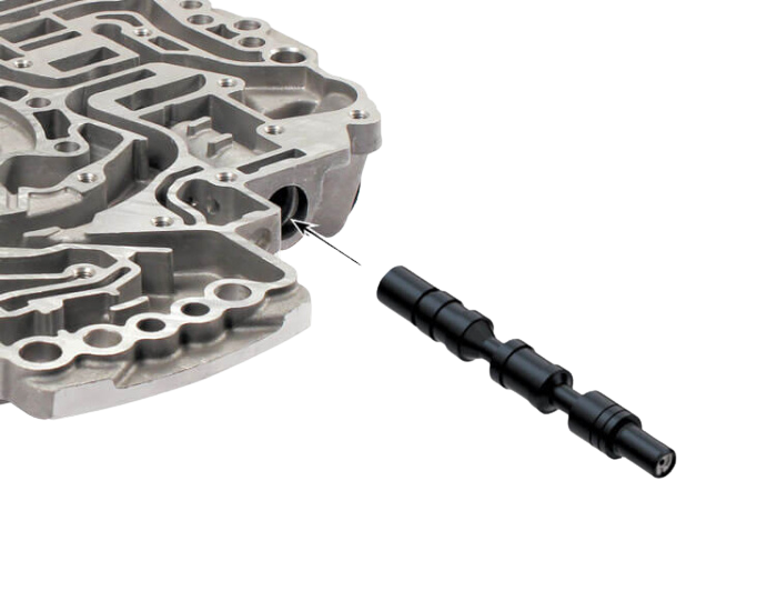 Installing the Sonnax drop-in lube regulated pressure regulator valve 44912-17K restores the fluid connection to the converter circuit at idle, which is especially important on tuned vehicles. This valve has an internal check valve that ensures proper converter and lube oil flow under extreme 'tuned' operating conditions, eliminating the fluid overheat and converter related engine stalls at idle. This check valve reseats properly to seal the converter at engine off, eliminating the delayed engagements and converter drainback issues that arise from the outdated technique of drilling a hole in the casting wall between line and lube circuits.