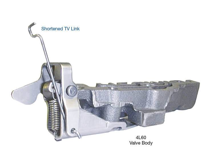 In GM 4L60 units, the TV cable synchronizes engine throttle movement with TV plunger movement. If the cable is not readjusted to ensure proper line rise, the unit may return quickly with soft shifts and a burned 3-4 clutch or band. Sonnax shortened TV link 77872-01 is shorter than the OE so that the installer must readjust the TV cable.