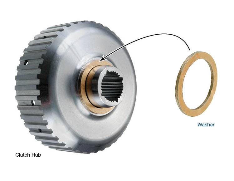 A pump that has been resurfaced or accumulated shaft spline wear creates excessive endplay of the forward and direct drums. This reduces sealing ring, clutch, bearing, and thrust washer life. Having the ability to shim both the lower unit sun gear with Sonnax shim 34500-Z on '96 and earlier TH400, 4L80-E and 4L85-E transmissions and washer 34301-078 or 34301-094 on all units addresses these problems.