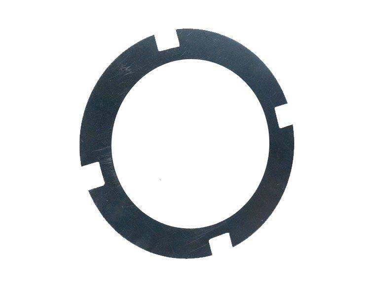 Sonnax offers two solutions for excessive endplay in GM TH400, TH425, 4L80-E and 4L85-E units. Sonnax rear unit endplay shim 34006-05 can be stacked under the four-tab metal thrust washer on the rear of the output shaft flange to set unit endplay in the same manner as the OE selective three-tab spacers. These shims eliminate the need to stock expensive or hard-to-find OE three-tab spacers and are an alternative to Sonnax shim 34500-Z. Shimming at this location maintains the stack-up height between the gear train main shaft and sun gear shaft.