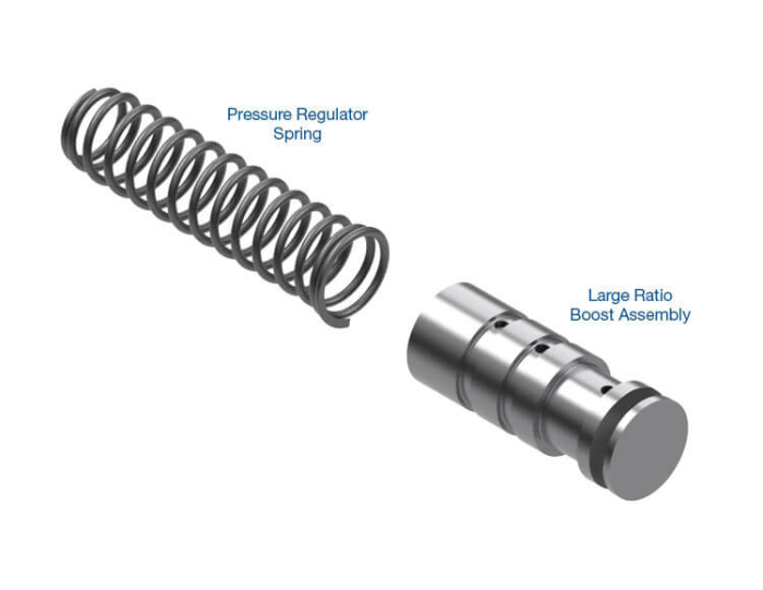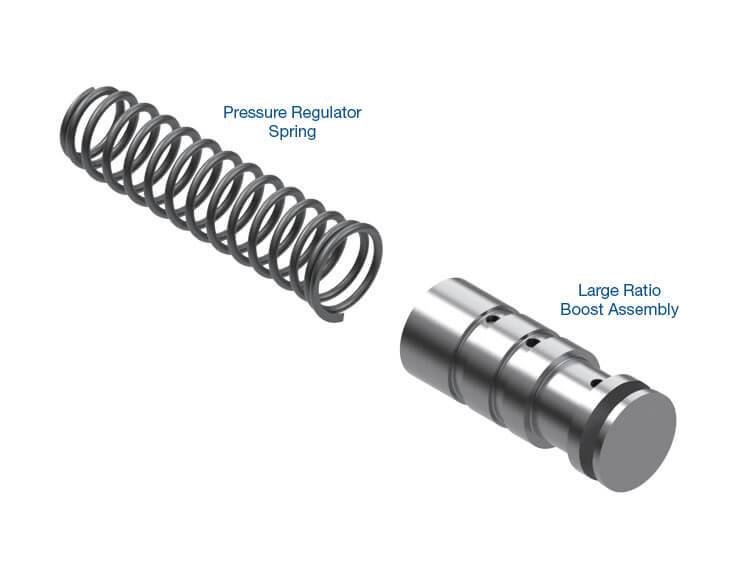 Our pressure regulator springs are approximately 10% stronger than OE and more conservative in impact than other aftermarket kit springs. Large ratio boost valves provide higher pressure incrementally and when it is needed the most. The combination of these springs and valves in a Sonnax kit gives you the best of both worlds: a modest pressure increase at the low end, with a high-end pressure that is equal to or greater than that of other aftermarket kit springs.