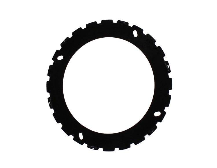 Sonnax high clutch steel S019715HK-150 is a severe-duty upgrade for use with Sonnax 24-lug clutch drums in GM Powerglide racing applications. These Kolene® steels have 24 external teeth, double the normal amount. With twice the number of teeth engaged, wear will be reduced dramatically. Combining anti-drag tabs and turbulator holes significantly reduces the heat generated when the clutch freewheels.