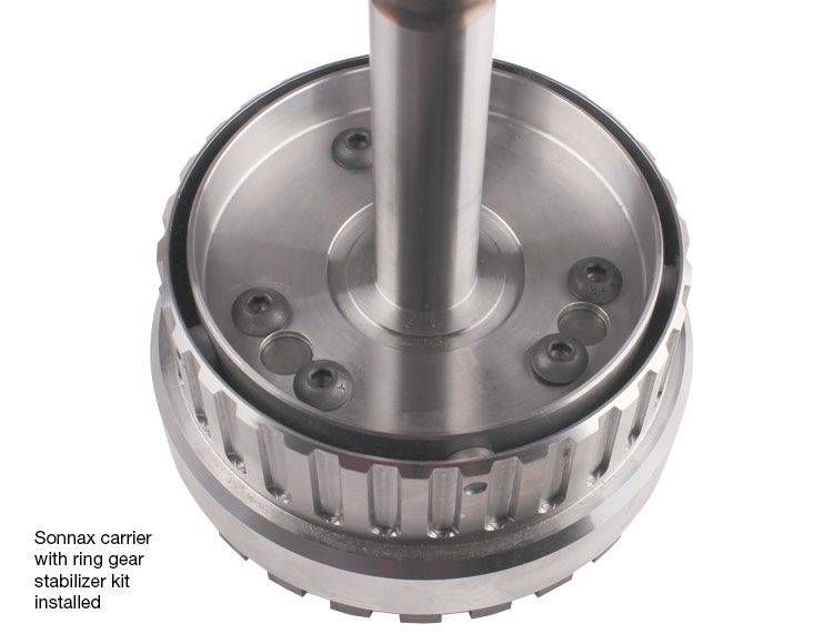 Ring gear stabilizer kit 25810-S3 installs easily on Sonnax bolt-together, 1.65 and 1.58 ratio planetary carriers. With proper support, the ring gear stays on-center, significantly reducing vibration and drag while preventing wear and short pinion gear stress.