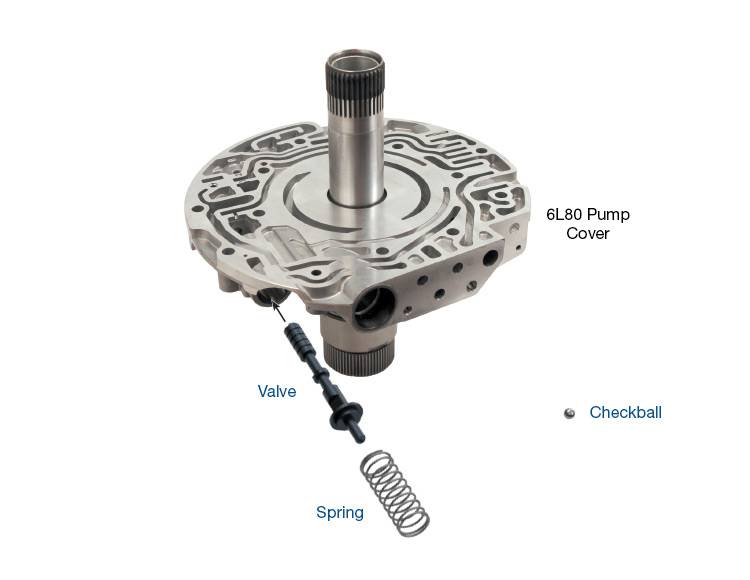 GM 6L45, 6L50, 6L80 and 6L90 units may exhibit multiple line pressure and cooler/converter/lube flow problems due to excess wear in the pressure regulator bore. Deterioration at the balance spool end allows critical fluid loss, resulting in high line pressure, harsh shifts and overheating due to reduced cooler/converter flow. Wear at the outboard spool robs converter feed pressure and lowers line pressure, resulting in soft shifts and burnt clutches.