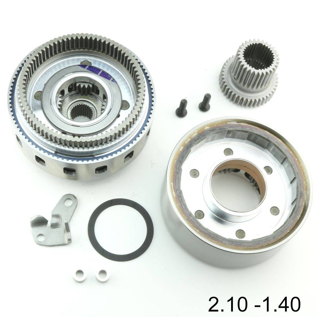 The Max Duty Straight Cut Series offer increased strength properties consisting of 6 pinion reaction carriers, 4 or 5 pinion output carriers and a larger diameter heavy duty input ring gear. A new larger diameter billet steel shell was designed to accept the larger diameter, heavy duty ring gears. This larger diameter required “windows” to be machined to allow “park” to function.