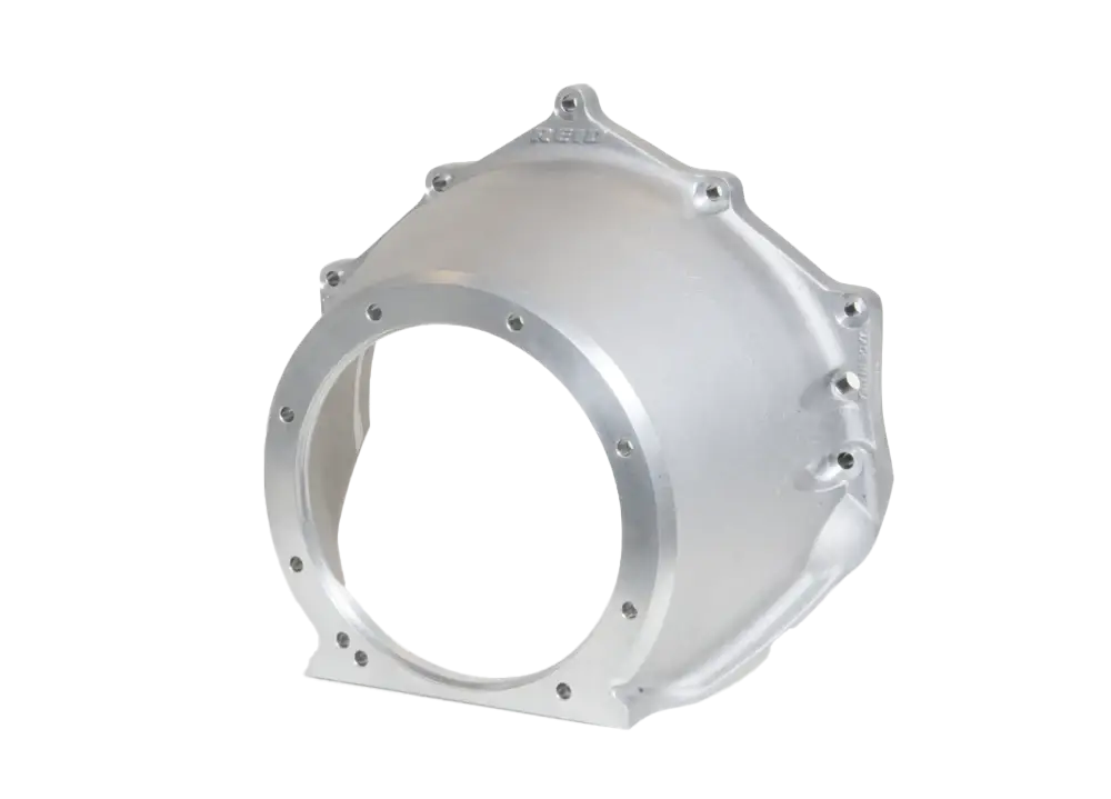 Chevrolet bellhousing for the Reid Racing 2 piece Superglide and Super Hydra 400® cases fits all Chevys including small block, big block, and LS V8’s along with 4.3 V6 engines. The bellhousing is 1 inch longer than a standard GM bellhousing to allow use with lock up converters. By not requiring a spacer or an even more expensive “can”, it is a cost effective solution for those cars requiring a lock up converter with tight transmission tunnels or applications where firewall clearance is at a premium.