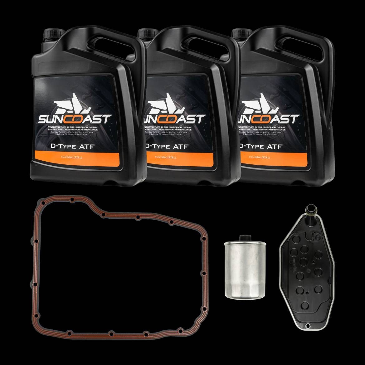 The complete 68RFE service solution trusted by SunCoast’s own technicians. This kit includes everything you need for a proper transmission service—our premium molded reusable pan gasket, internal sump filter, spin-on filter, and three gallons of SunCoast Full Synthetic Type-D ATF. Whether you’re maintaining your daily driver, towing heavy loads, or pushing serious power, this kit is built to keep your transmission performing like new.